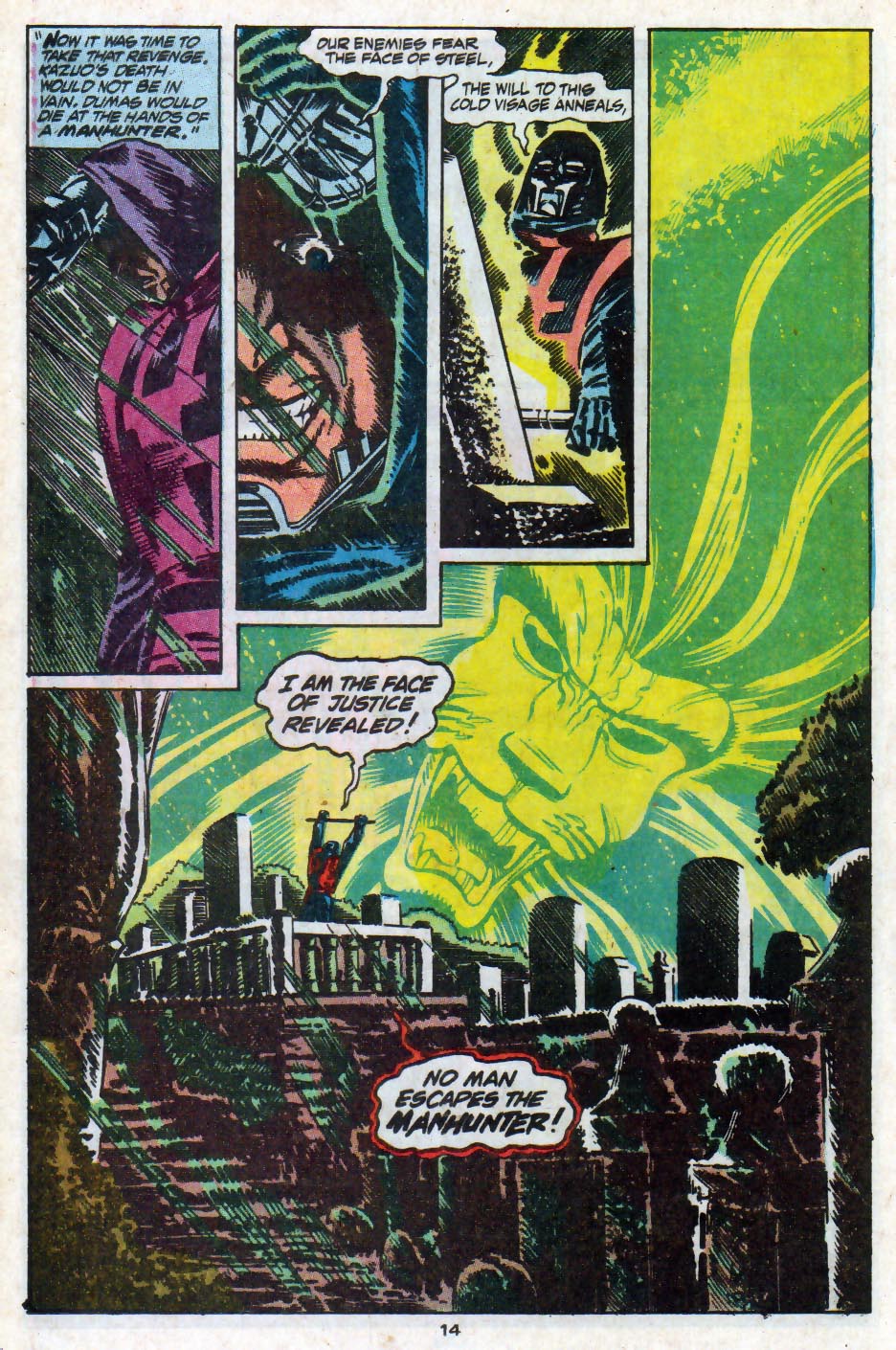 É quando ele decide caçar a maior das presas…os criminosos, que também é a deixa para justificar o nome “manhunter“, que numa tradução livre é “caçador de homens” ou “caçador humano“, inclusive reforçado pelo mote “ele persegue a presa mais perigosa do mundo…“, como apresentado no texto de introdução de suas histórias.