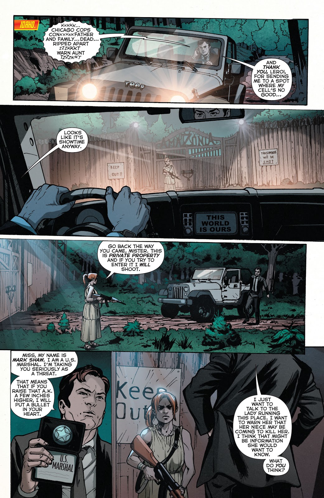 Não bastante isso, o roteirista ressuscitou o Questão/Vic Sage — um bem vindo e desejado retorno, na verdade. O roteirista nem se deu ao trabalho de promover um reencontro de Shaw e Spencer.