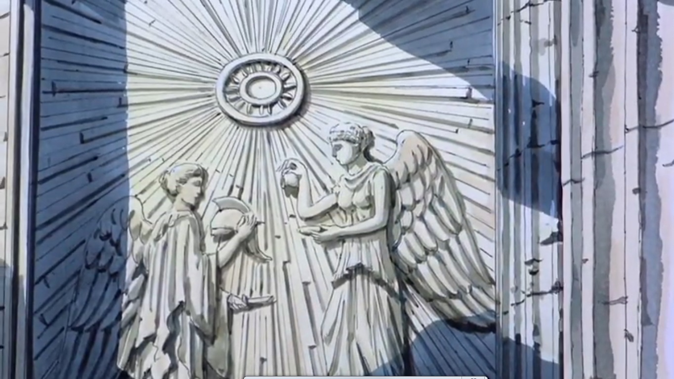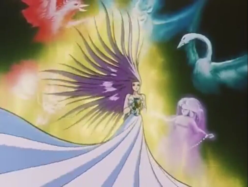 Atena mitológica na abertura do seriado. Arte de Shingo Araki