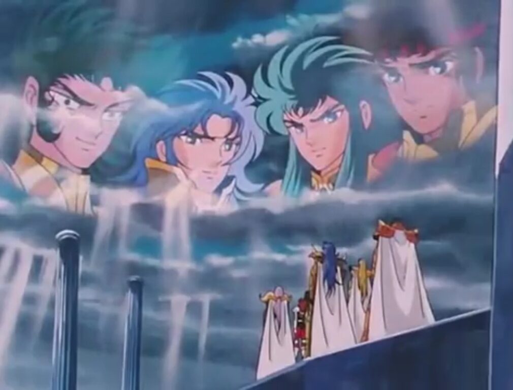 Temos também os cinco Cavaleiros de Ouro remanescentes — Mu de Áries, Aldebaran de Touro, Aeolia de Leão, Shaka de Virgem e Milo de Escorpião — decidindo o que fazer, já que estão “presos” no Santuário por ordem de Atena e do Mestre Ancião (à postos de um vindouro Hades).