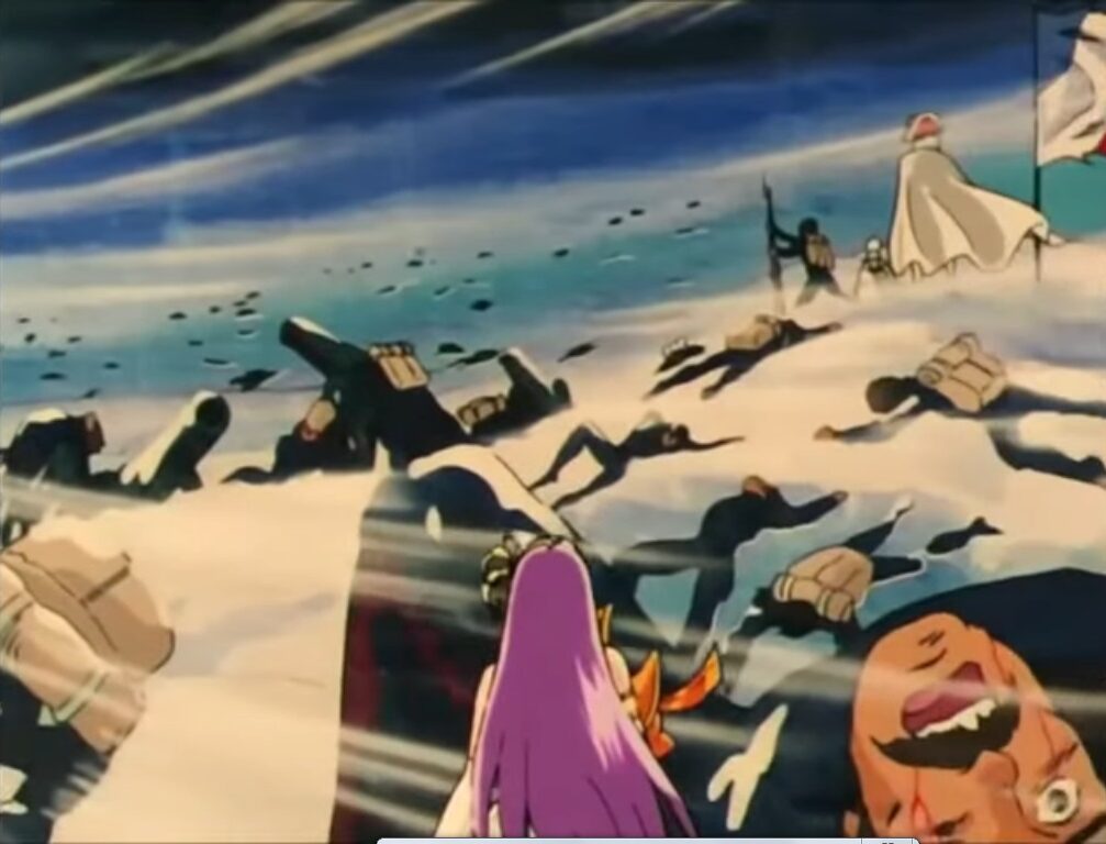 Tomoko Kobayashi fez a direção de um dos melhores e mais impressionantes (e violentos) episódios de Cavaleiros do Zodíaco: A Fronteira Entre a Vida e a Morte (01×31), onde Ikki massacra dois Cavaleiros de Prata, Dante e Capela, sem nenhuma piedade. Nas imagens, também o cadáver de Jamian de Corvo