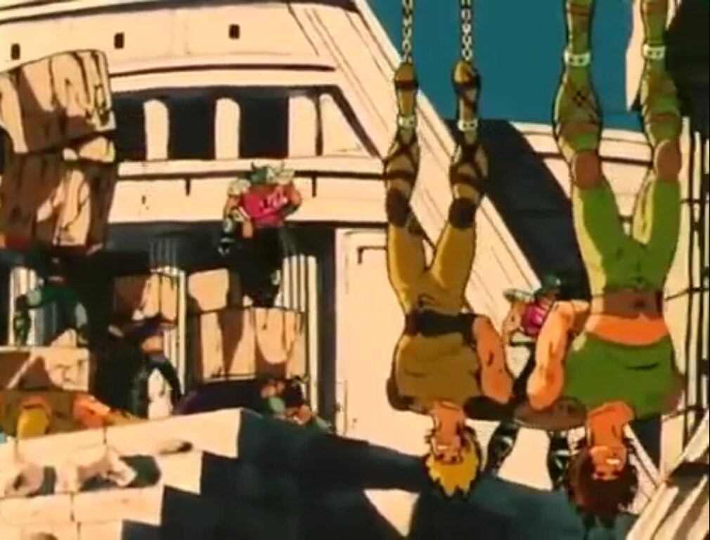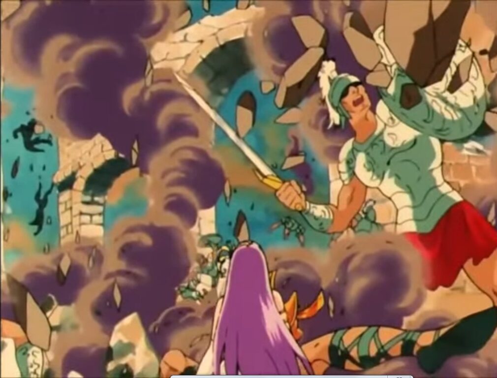 A um custo extremo de sacrifício, Shiryu de Dragão derrota Argol de Perseu (a primeira tradução é muito mais legal: Persius Argol de Medusa)