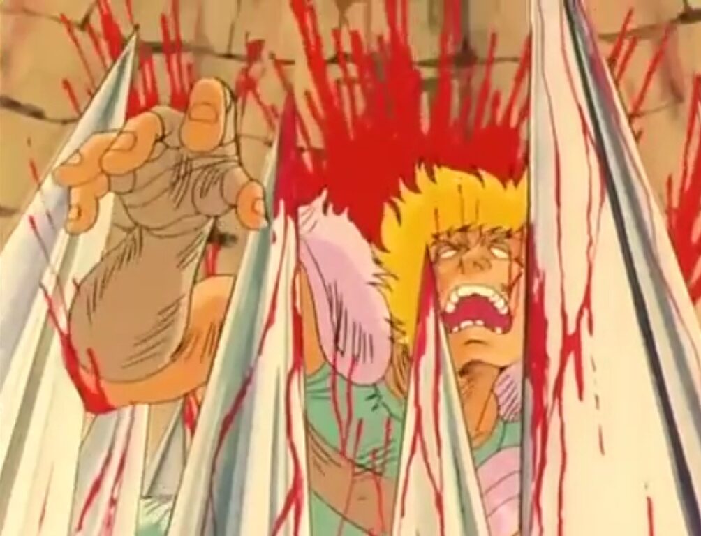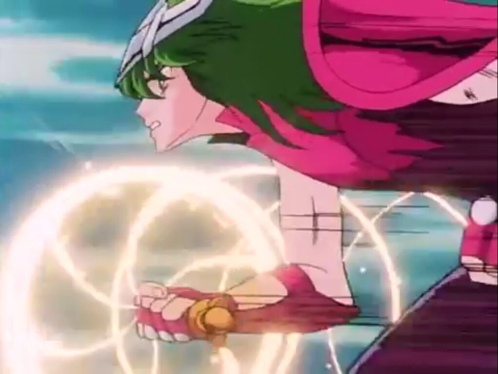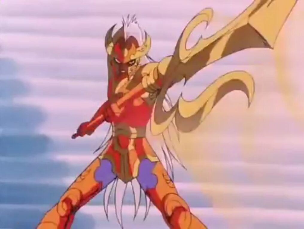 Ikki estraçalha Orfeu de Harpa, um dos Cavaleiros de Prata ressuscitados por Éris no primeiro OVA dos Cavaleiros do Zodíaco
