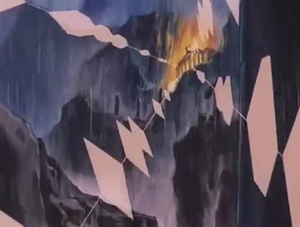 A qualidade de cenário com Shingo Araki dirigindo a arte do primeiro episódio. Perceba a riqueza de contraste de cores e formas