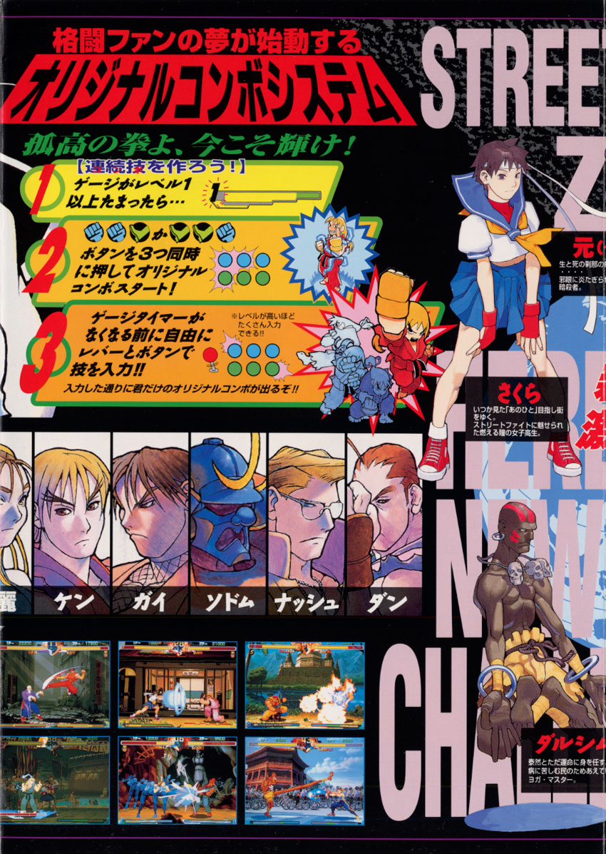 Aparecem vários lutadores do line-up de SFZ2, como Ken, Sakura, Chun-Li, Birdie, Adon, Sodom, Guy, Rose, Rolento, Dhalsim e Dan.